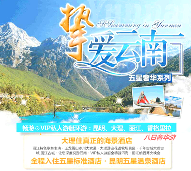 昆明中國國際旅行社有限公司(簡稱:昆明中國國旅,昆明國旅)是云南旅行社 、昆明旅行社的佼佼者,24小時免費電話:400-077-2391,承辦以下業務:云南旅游,昆明旅游,麗江旅游,西雙版納旅游,香格里拉旅游,瀘沽湖旅游等旅游線路服務,并提供云南打折機票,酒店預訂,火車票預訂及租車服務。云南旅游線路詳細介紹云南歷史、地理、交通,風土人文、旅游景點、云南少數民族特色特產